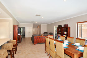 The living and dining are very generous and lead on to a massive kitchen with quality appliances. And the laundry has ample space and storage.